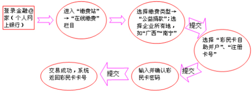 2、“金融@家”申请注册彩民卡(注销、查询、修改密码流程相同):查看流程>>